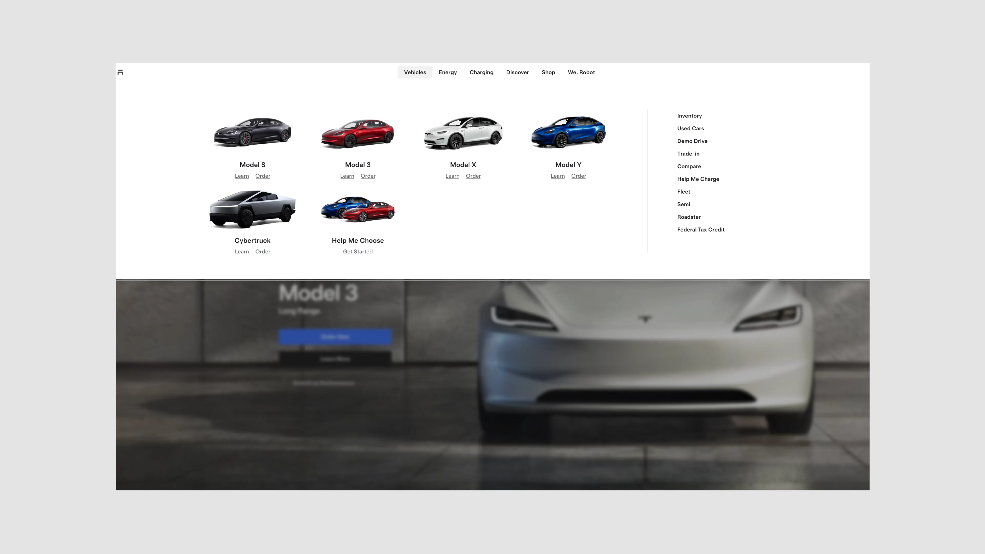 On mobile, we took a page from Tesla’s navigation and allowed the user to properly view content without having to deal with the flaws of generic responsive mega menus that end up getting quite cluttered or overly simplified to fit the limited real estate on mobile screens. This meant having seperate tabs for different menu items, allowing the user to view everything in a simple list format. Check it out on your mobile screen on defualt.com but below is the wireframe we did: