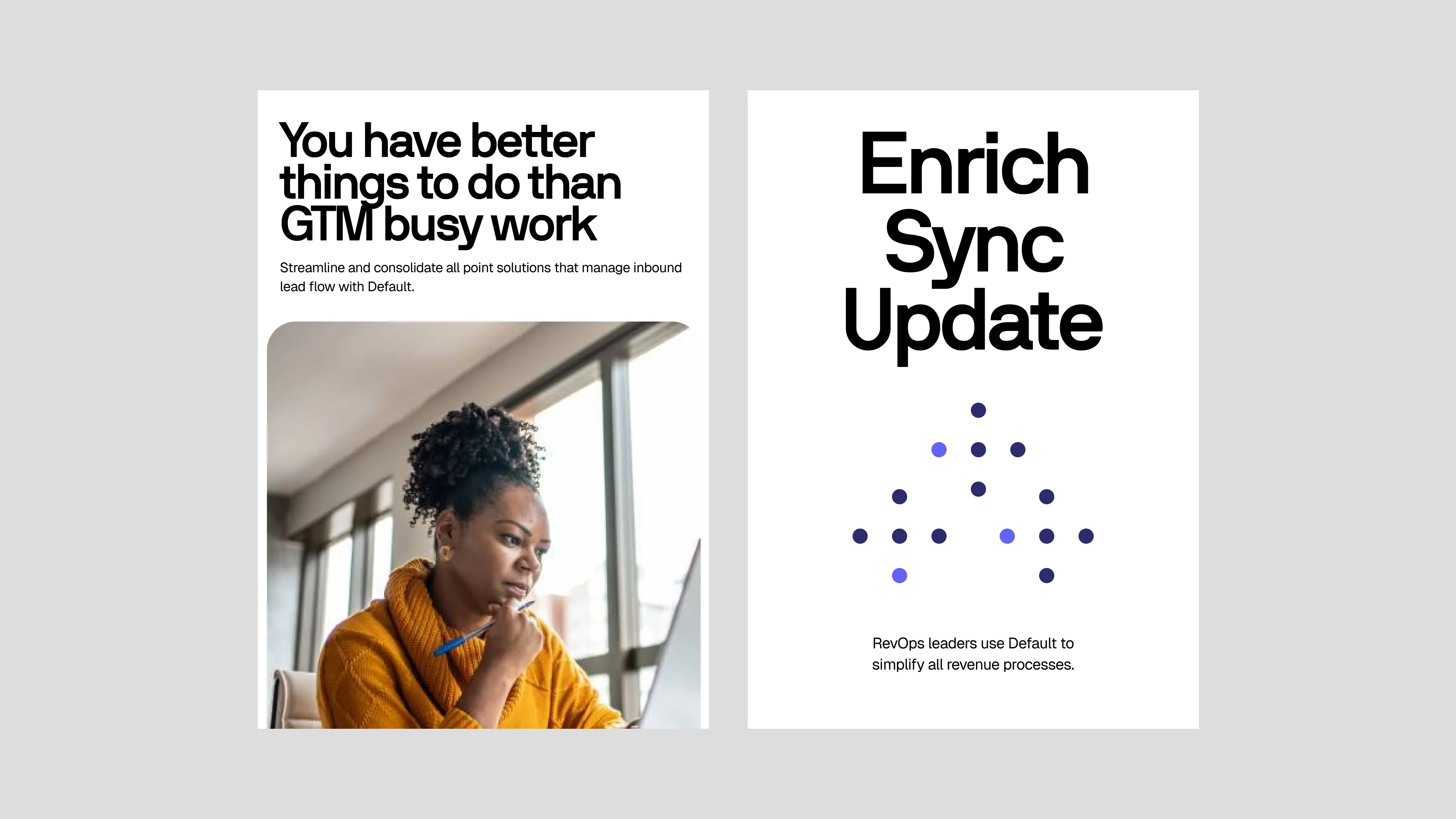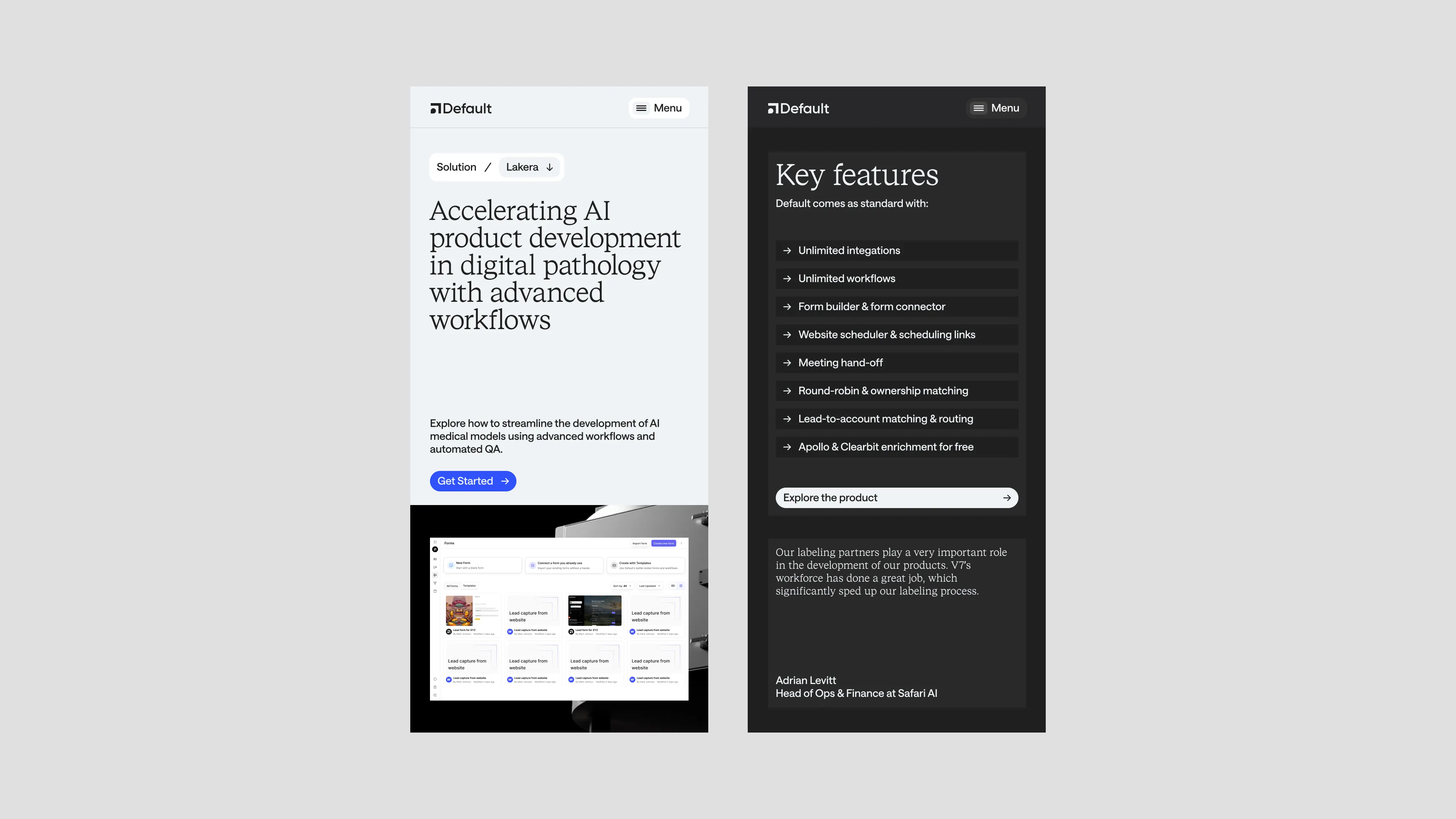 With Default, we connected with the common goal to reposition the company for their 2.0 launch. That means a refreshed identity, new website design, improved product messaging, and development + content migration. The timeline was tight [8 weeks] and the task was quite heavy.