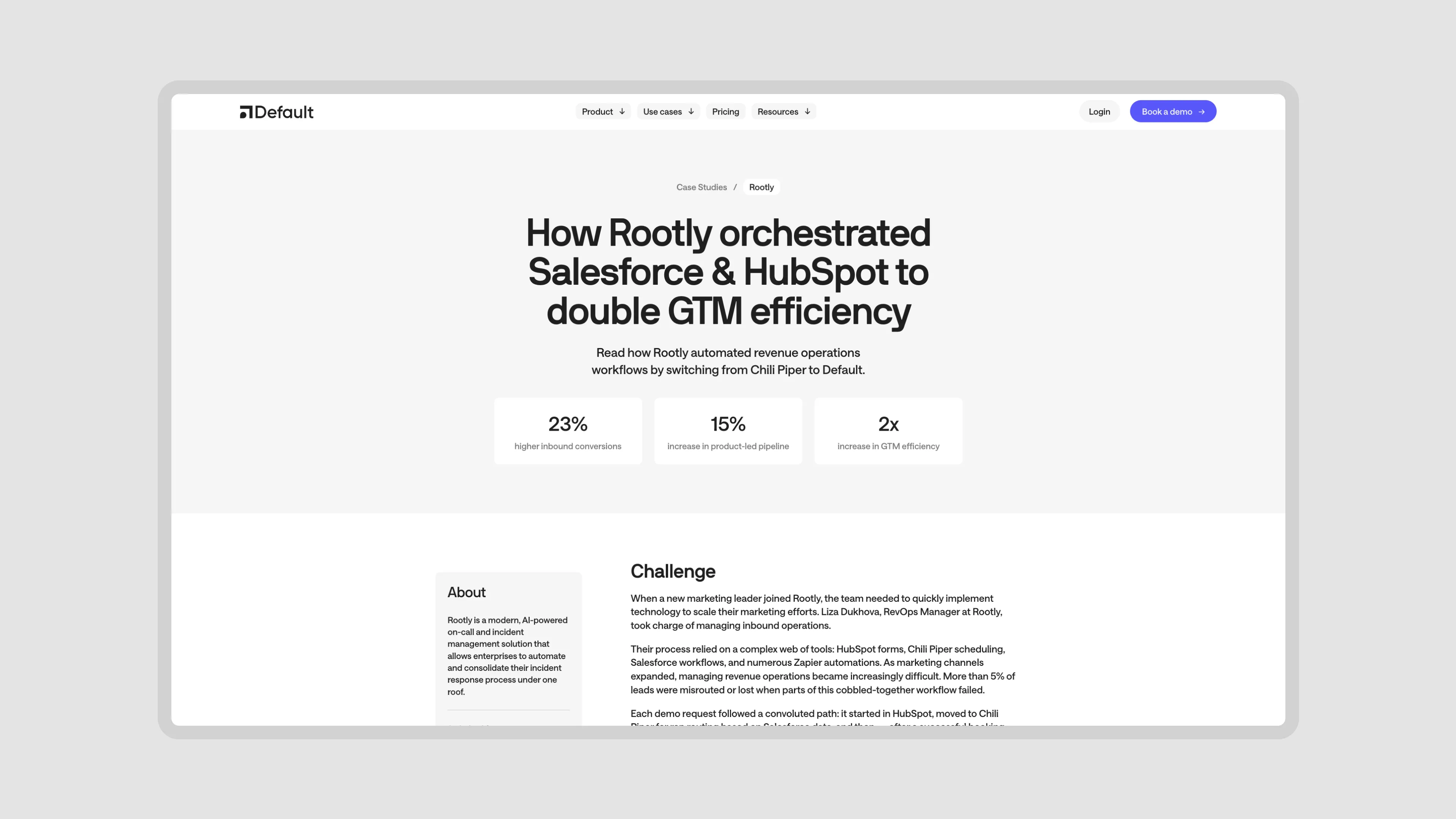 Default had some really strong case studies and customer stories of people actually using core products to drive more revenue, book more calls, etc. Real tangible benefits.