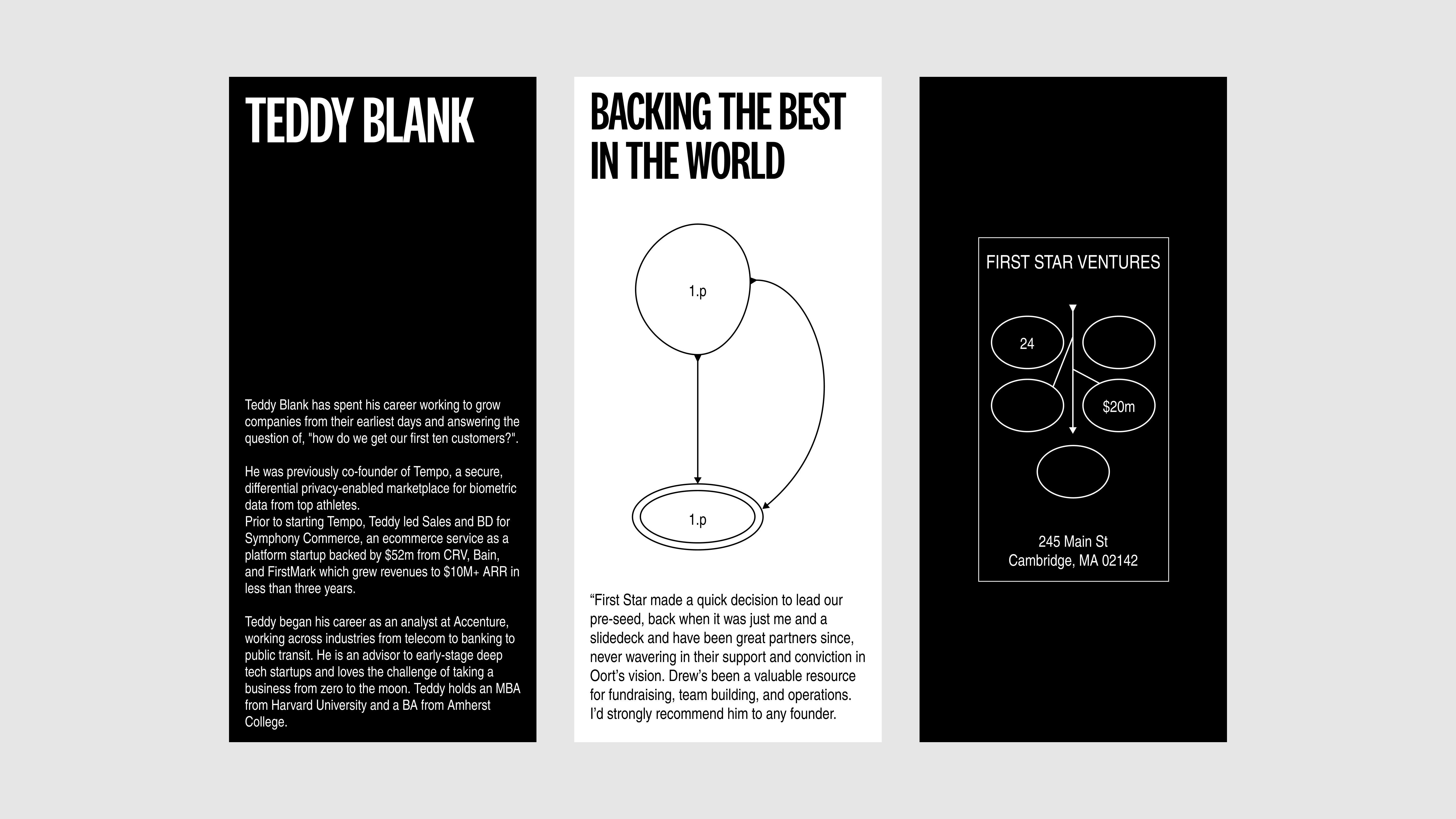 First Star Ventures is a VC is backing researcher founders using the next evolution of computing to transform industries. We engaged with them for an end-to-end brand re-haul.