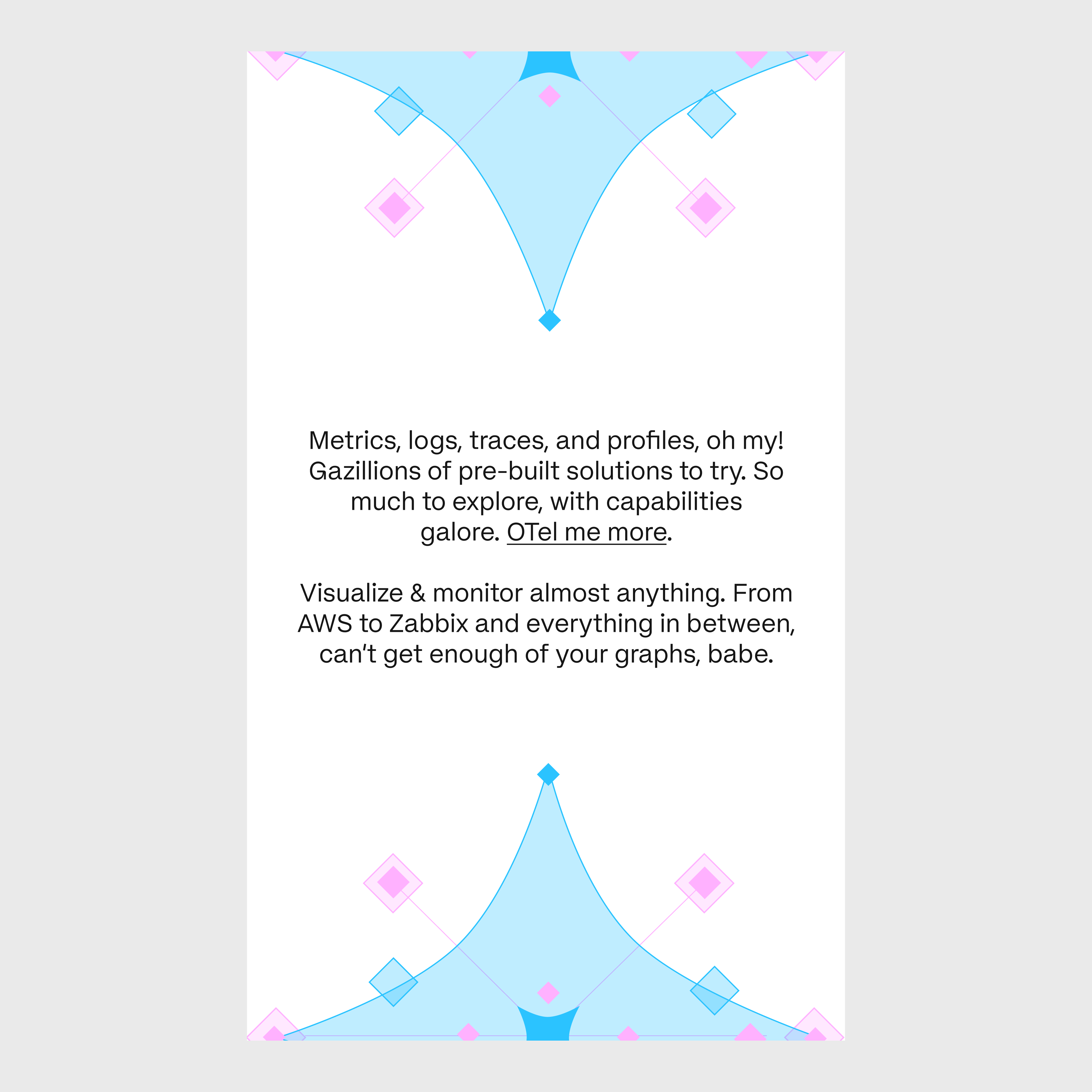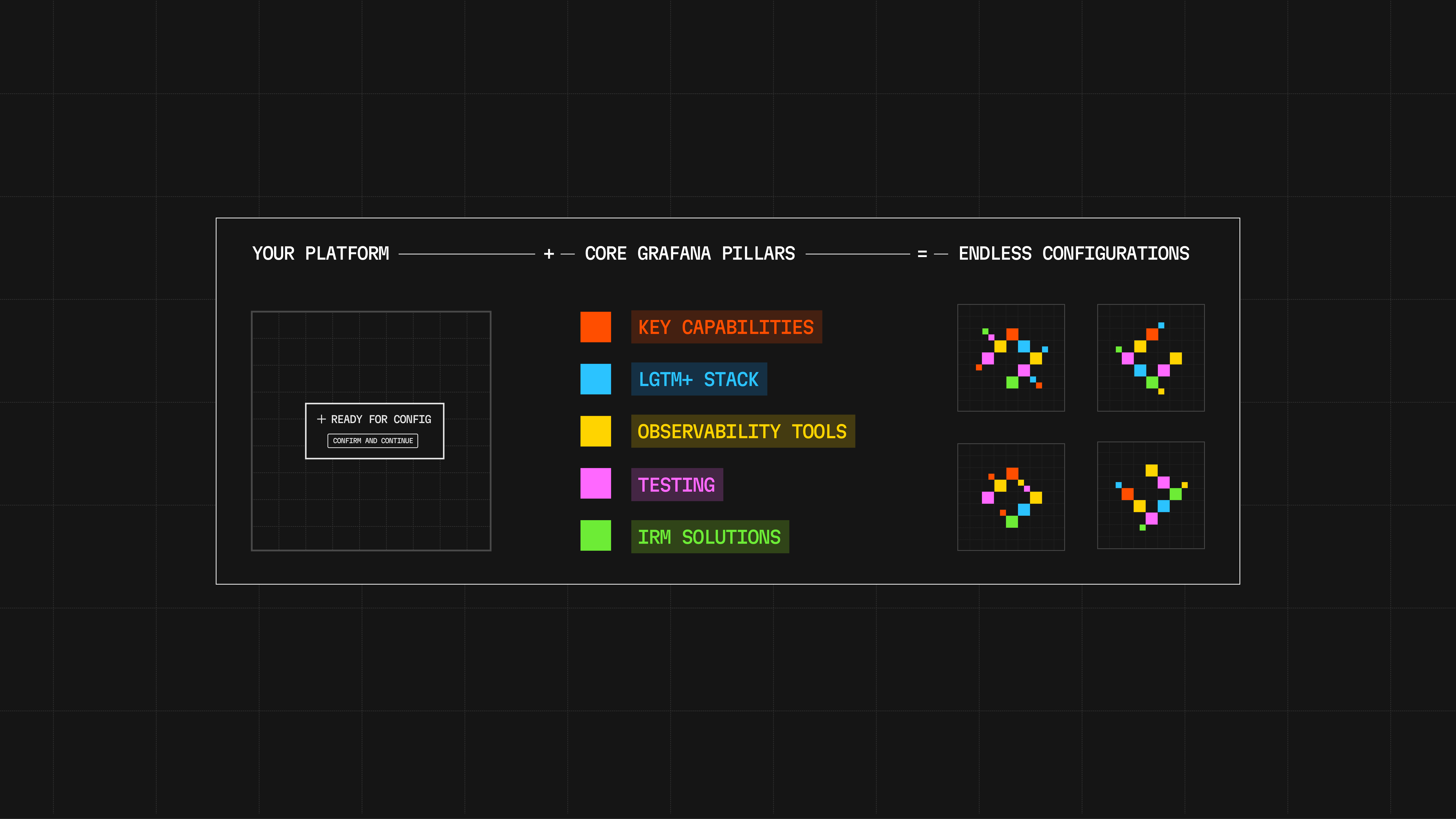 Grafana is building the ecosystem for open source development projects: observability, scanning, analytics, AI insights, performance testing, etc. As a part of this system, a core challenge became finding a way to visualize all of the products and ideas into a language that felt cohesive, fresh, and deeply technical.